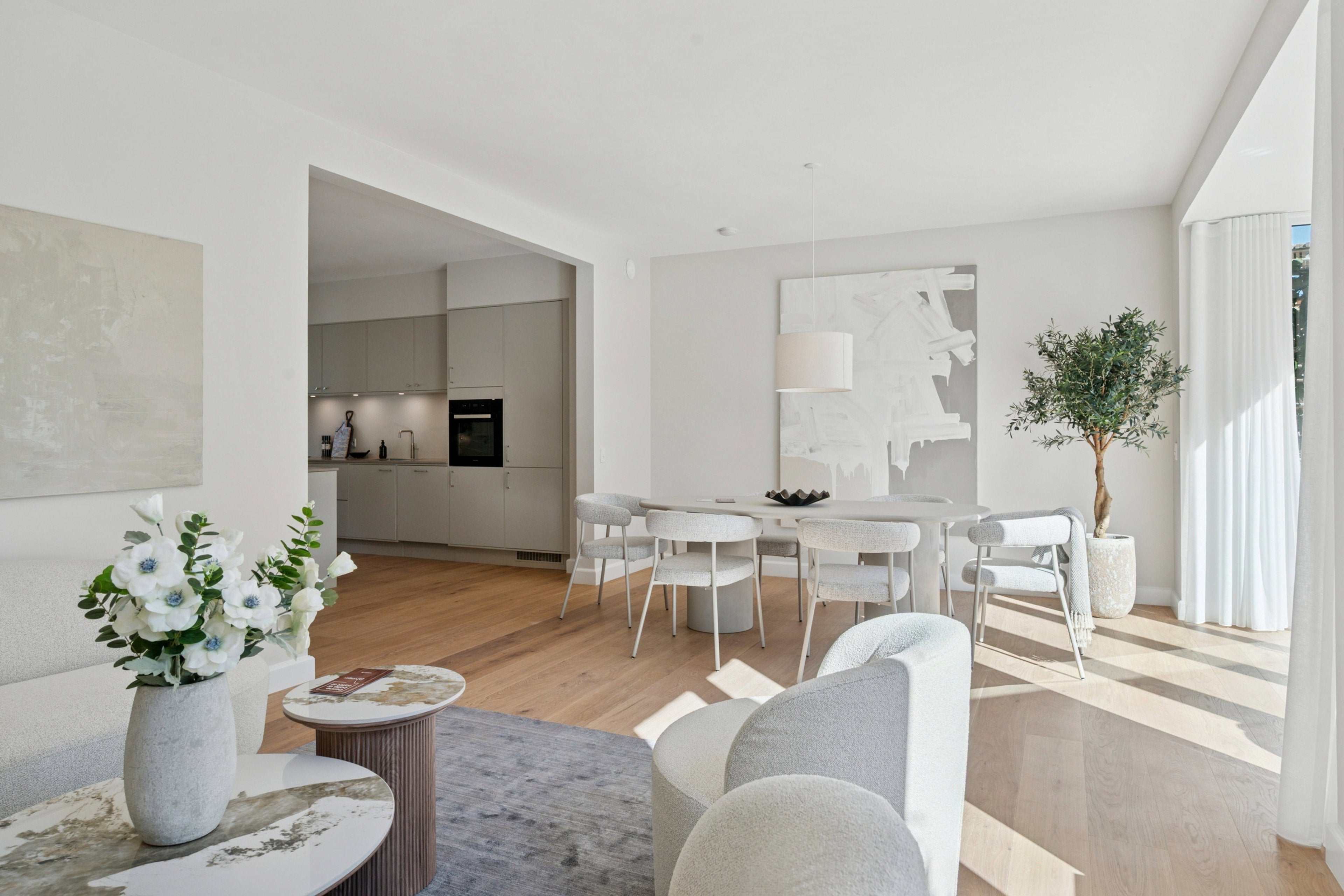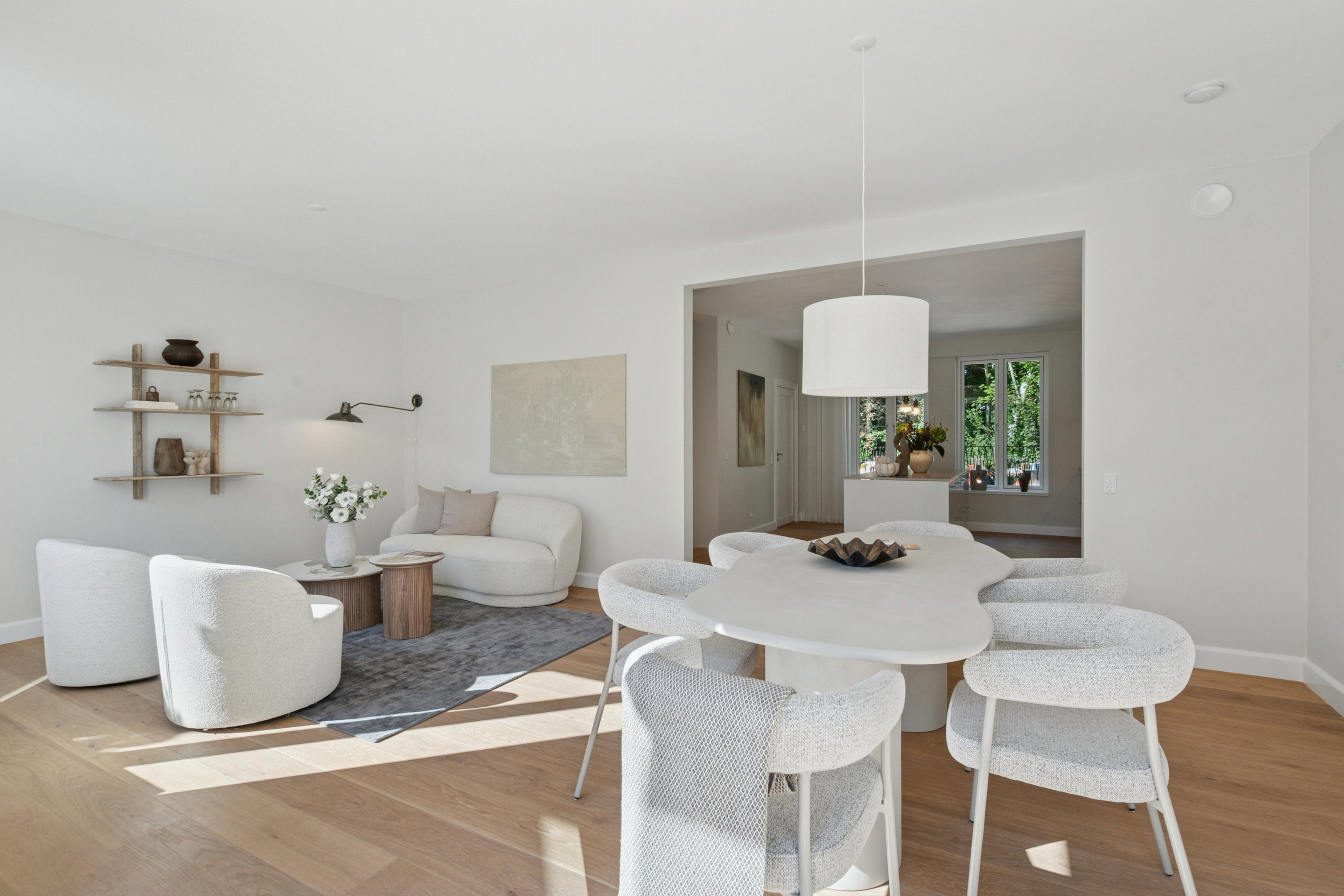 Et moderne og stilrent rækkehus i naturskønne omgivelser ved Vedbæk. Vi stylede boligen fra bunden med fokus på at fremhæve de lyse rum, de rene linjer og den åbne planløsning. Med bløde tekstiler, rolige naturtoner og nøje udvalgte møbler skabte vi en varm og indbydende atmosfære, der understøtter hjemmets arkitektur og giver rummene et elegant, nordisk udtryk. Samtidig blev der arbejdet med at skabe en naturlig sammenhæng mellem inde- og uderum, så boligens grønne omgivelser bliver en integreret del af oplevelsen.