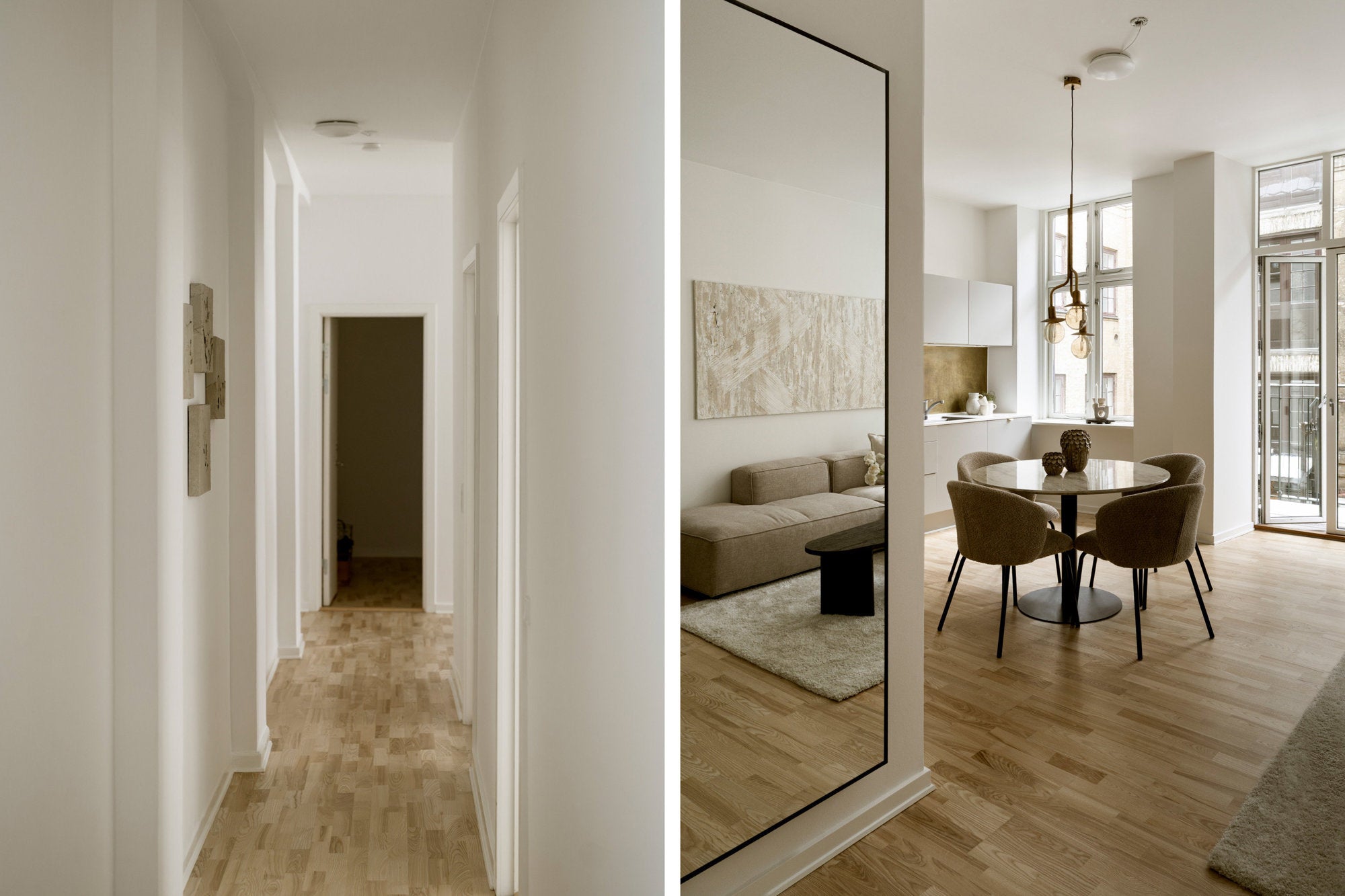 En herskabelig lejlighed på Nørregade i Indre By, hvor Vosper Boligstyling har skabt en gennemført og elegant indretning med fokus på boligens klassiske detaljer og høje lofter. Med lyse parketgulve, afdæmpede nuancer og nøje udvalgte materialer fremstår boligen harmonisk og eksklusiv. Stylingens rene linjer og varme elementer understreger lejlighedens arkitektur og skaber en rolig, indbydende atmosfære midt i København.