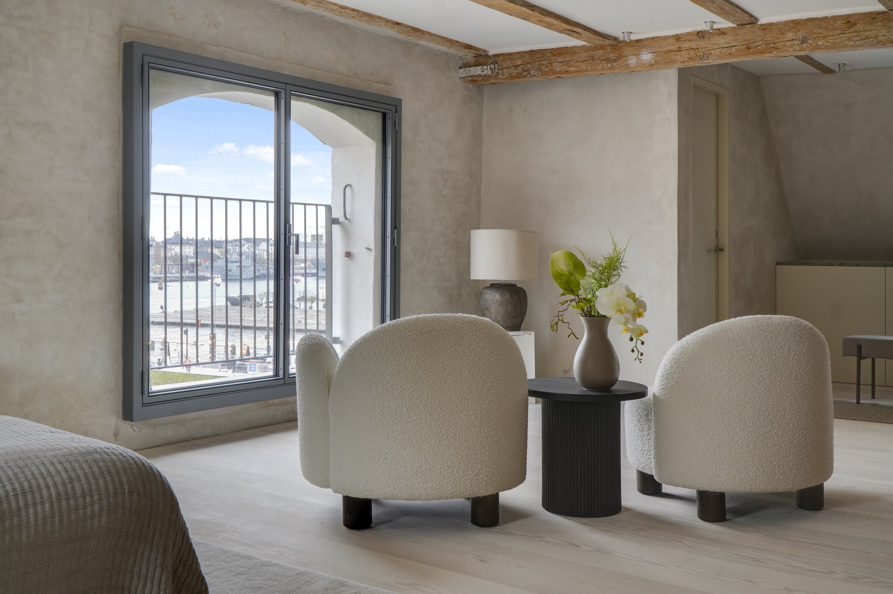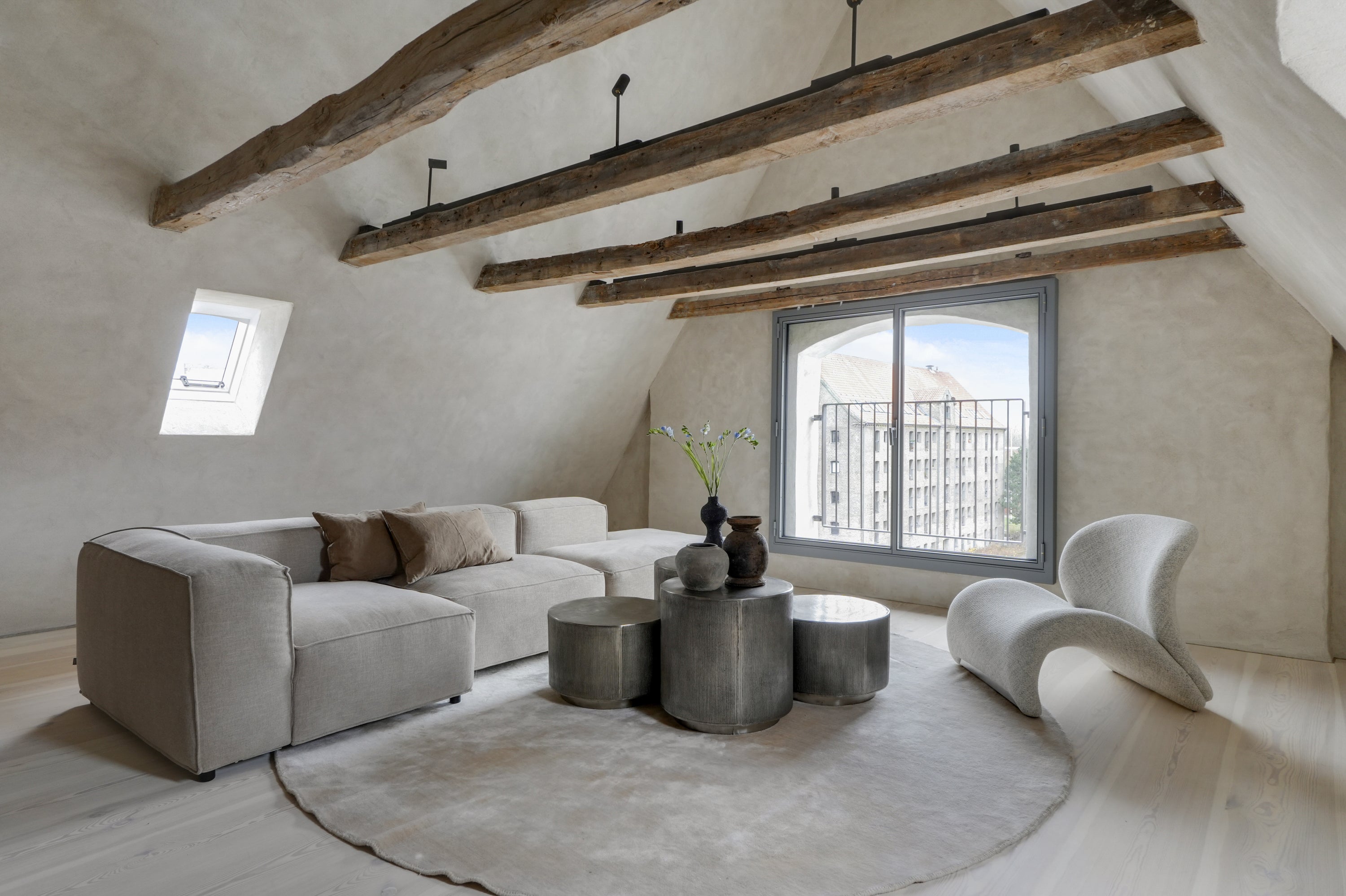 En stilren 2-etagers lejlighed på Strandgade 104 i København K med udsigt til Broens Skøjtebane.