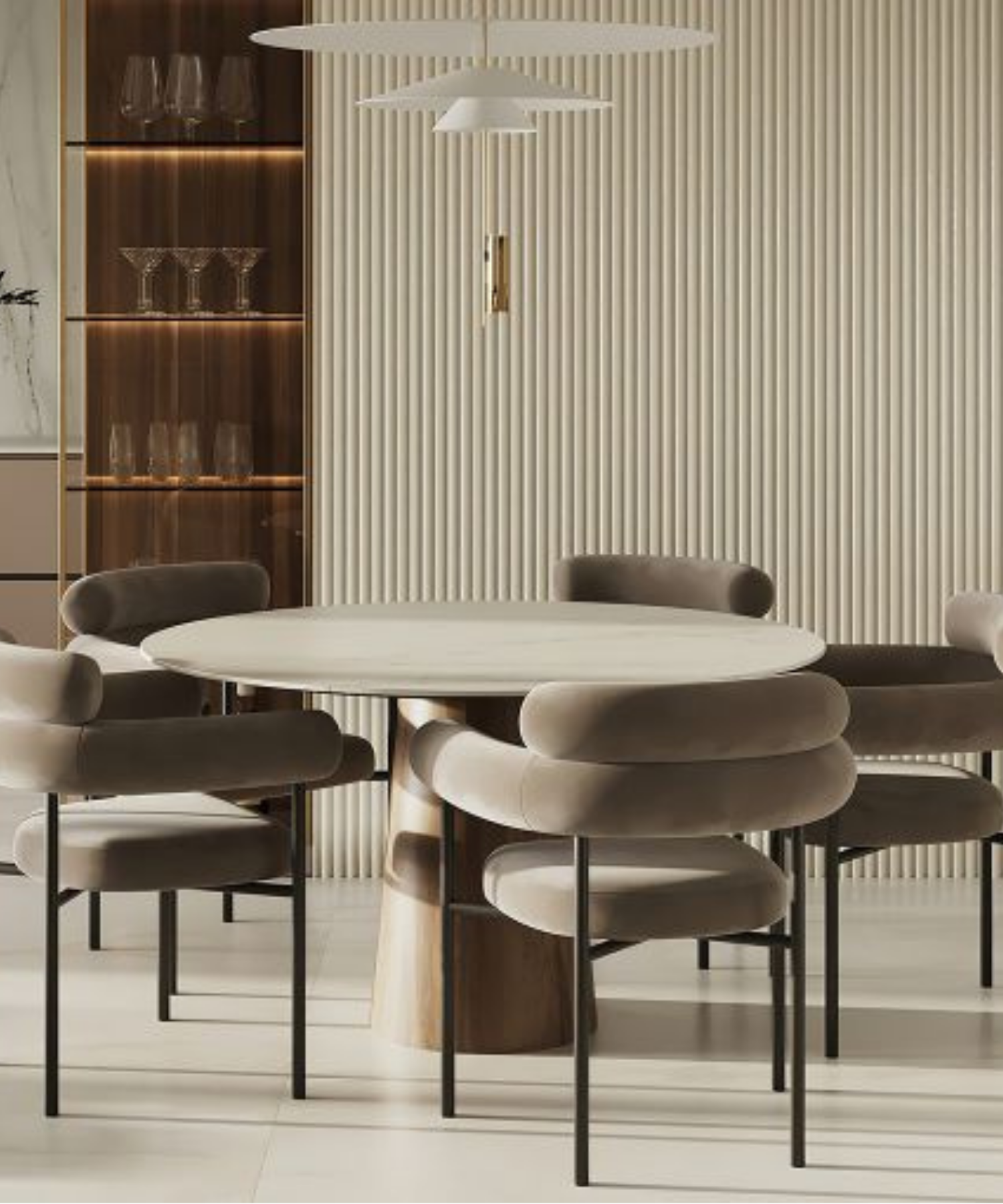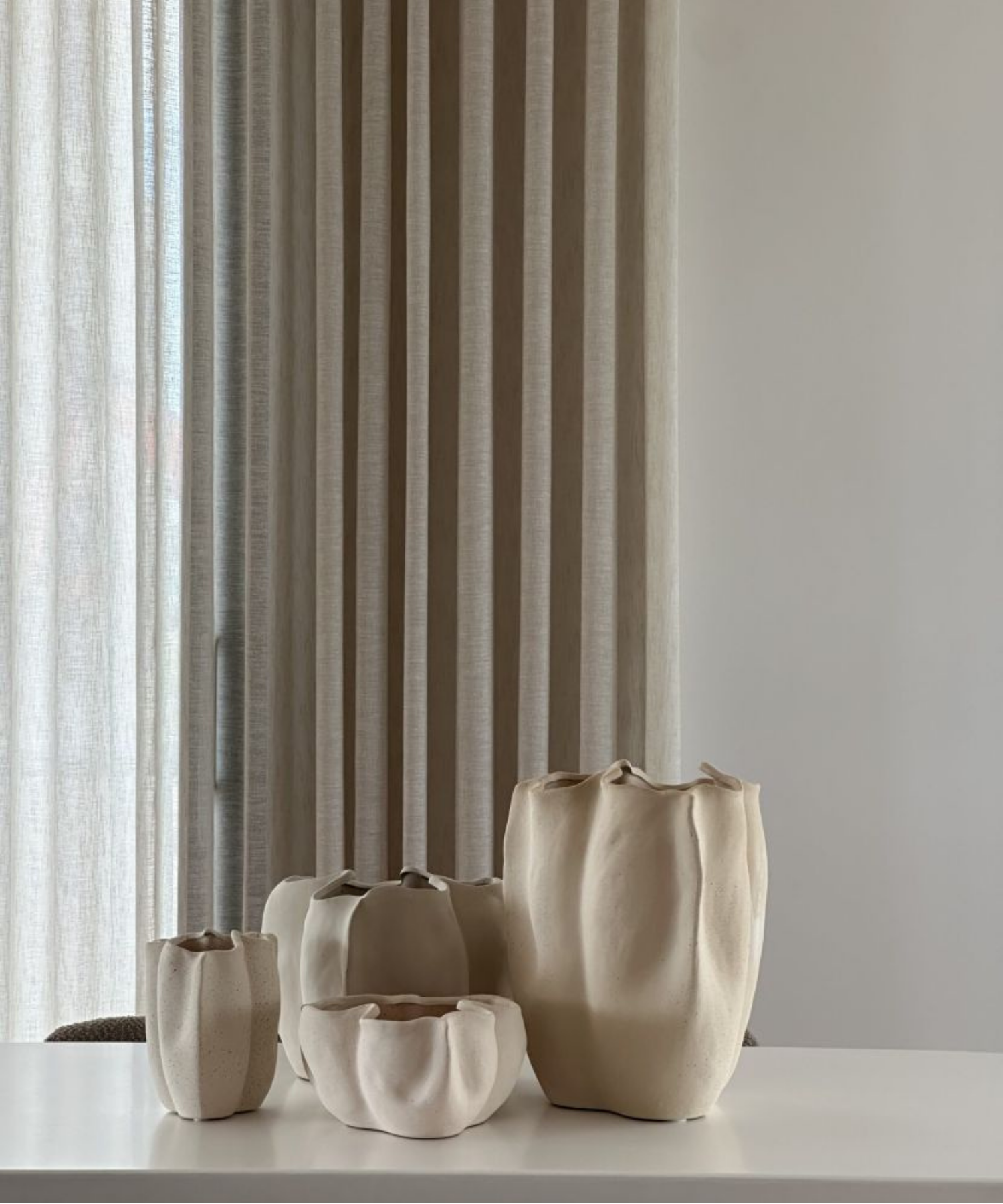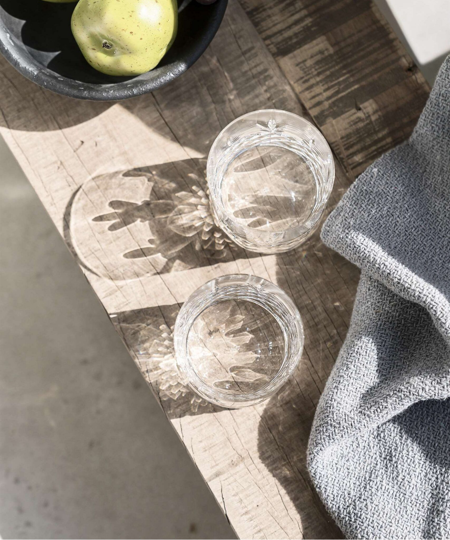 Et håndlavet tæppe i kelim, der tilføjer varme og struktur til rummet. Tæppet binder indretningen sammen og skaber en rolig base for sofa og møbler.
